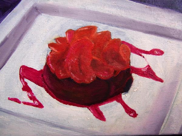2009年の作品。華やかな色彩と透明感、水の中にある別世界というコンセプト。実は魚は描いてあるのではなく、半立体という形で、絵に張り付いています。